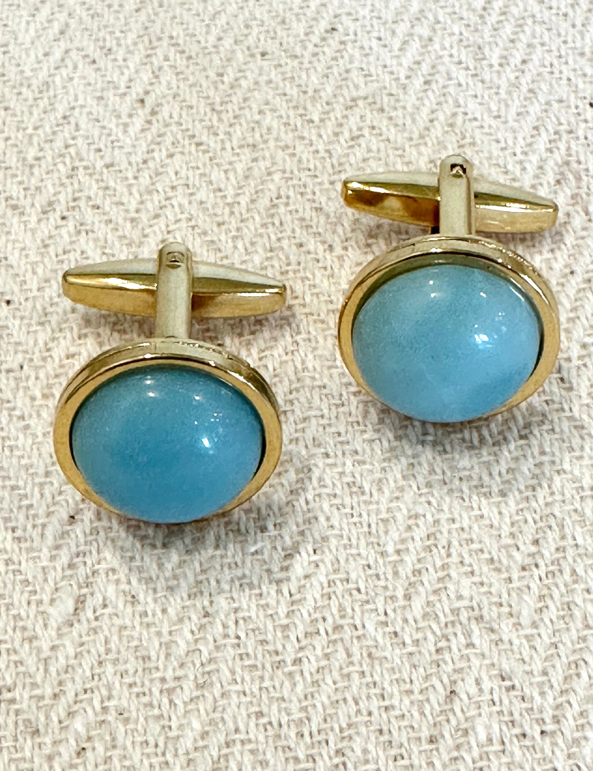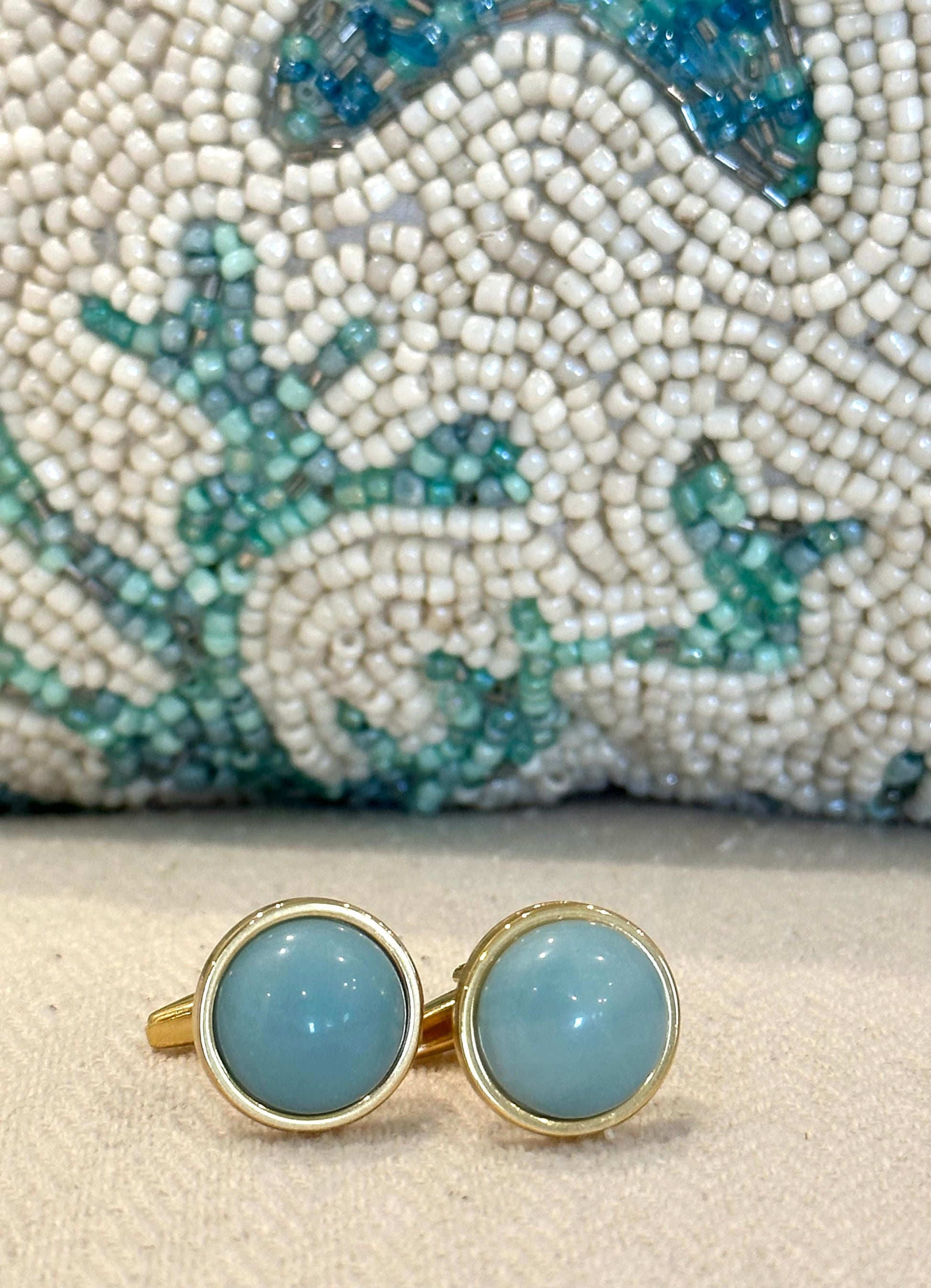 Amazonite Cufflinks come ready for gift giving in a unique cufflink box. Use the drop down menu to choose your setting: sterling silver (925), gold plated sterling silver, rhodium plated sterling silver, rose gold plated sterling silver, silver plated, gold plated or stainless steel. The stones are 5/8" diameter.