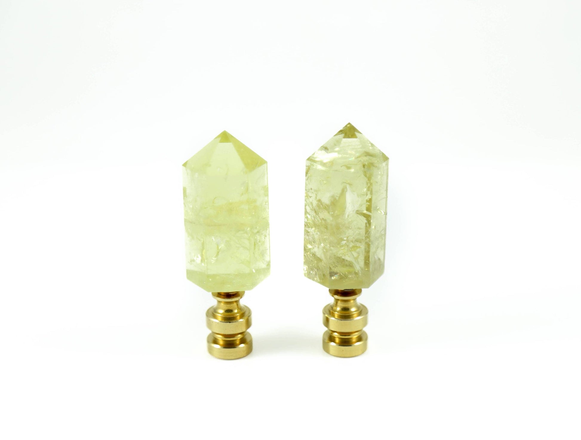 This citrine finial set is made with high quality hand-selected citrine crystals. The citrine quartz are set on a clean and modern brass base without prongs in order to showcase the raw stones. Great for a natural, organic, minimalistic home decor look.