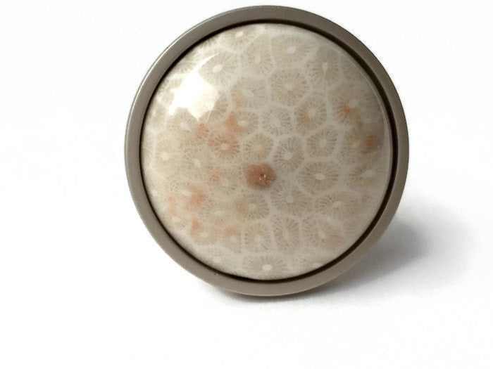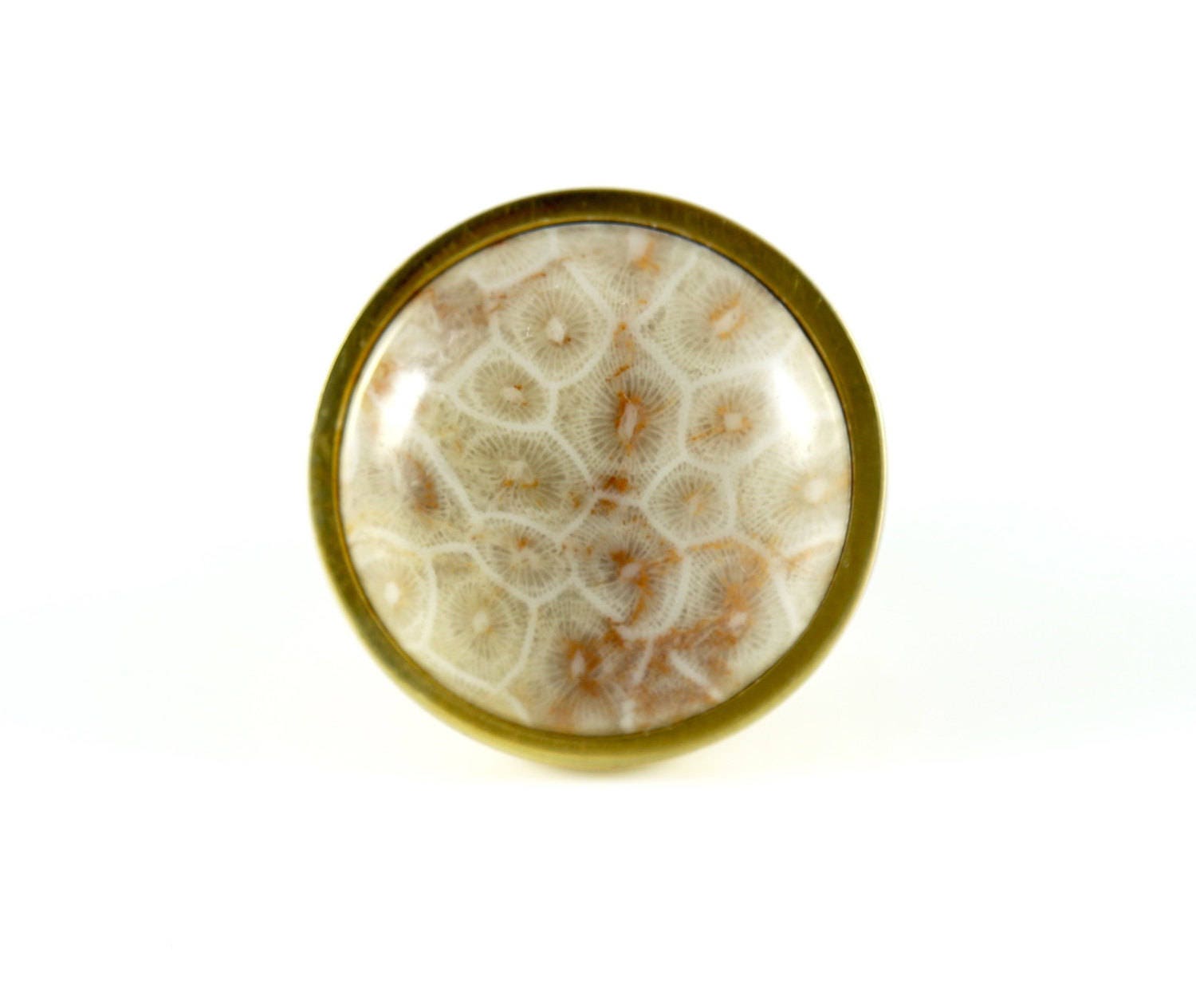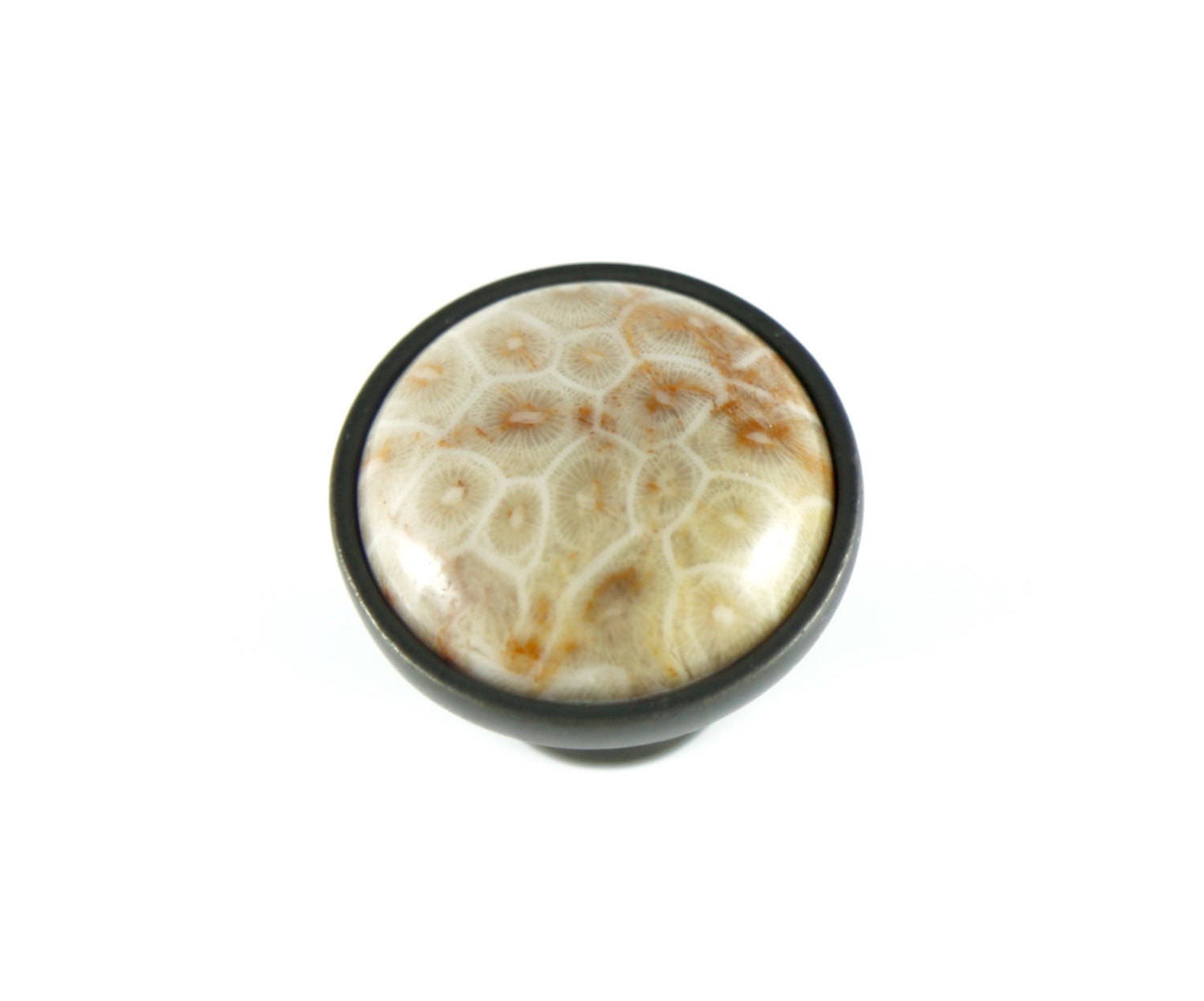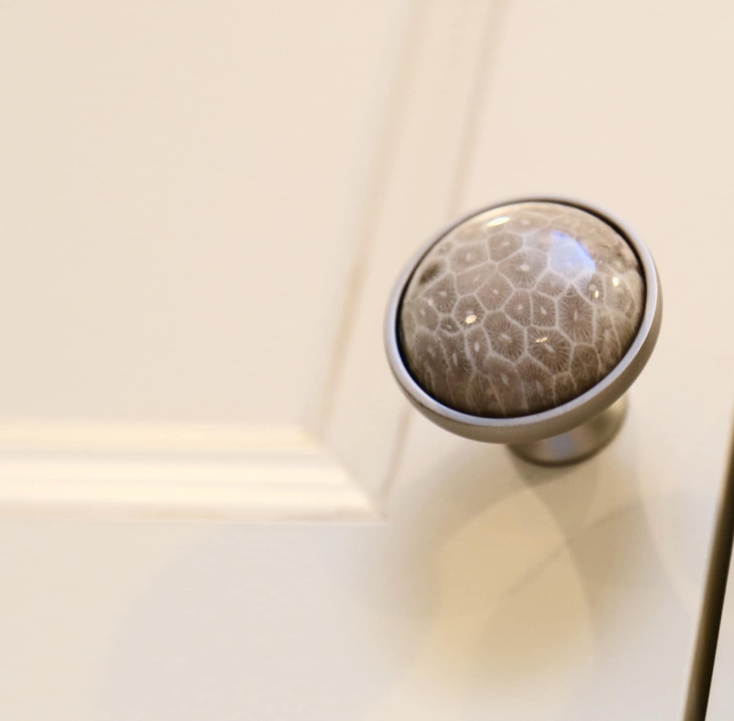 The Coral Fossil Knob is the perfect way to infuse a coastal glam feel to your home. This natural coral knob can be used as a drawer knob, cabinet knob, bathroom vanity knob or furniture knob. It features a beautiful coral fossil set in a solid brass base in the finish of your choice!