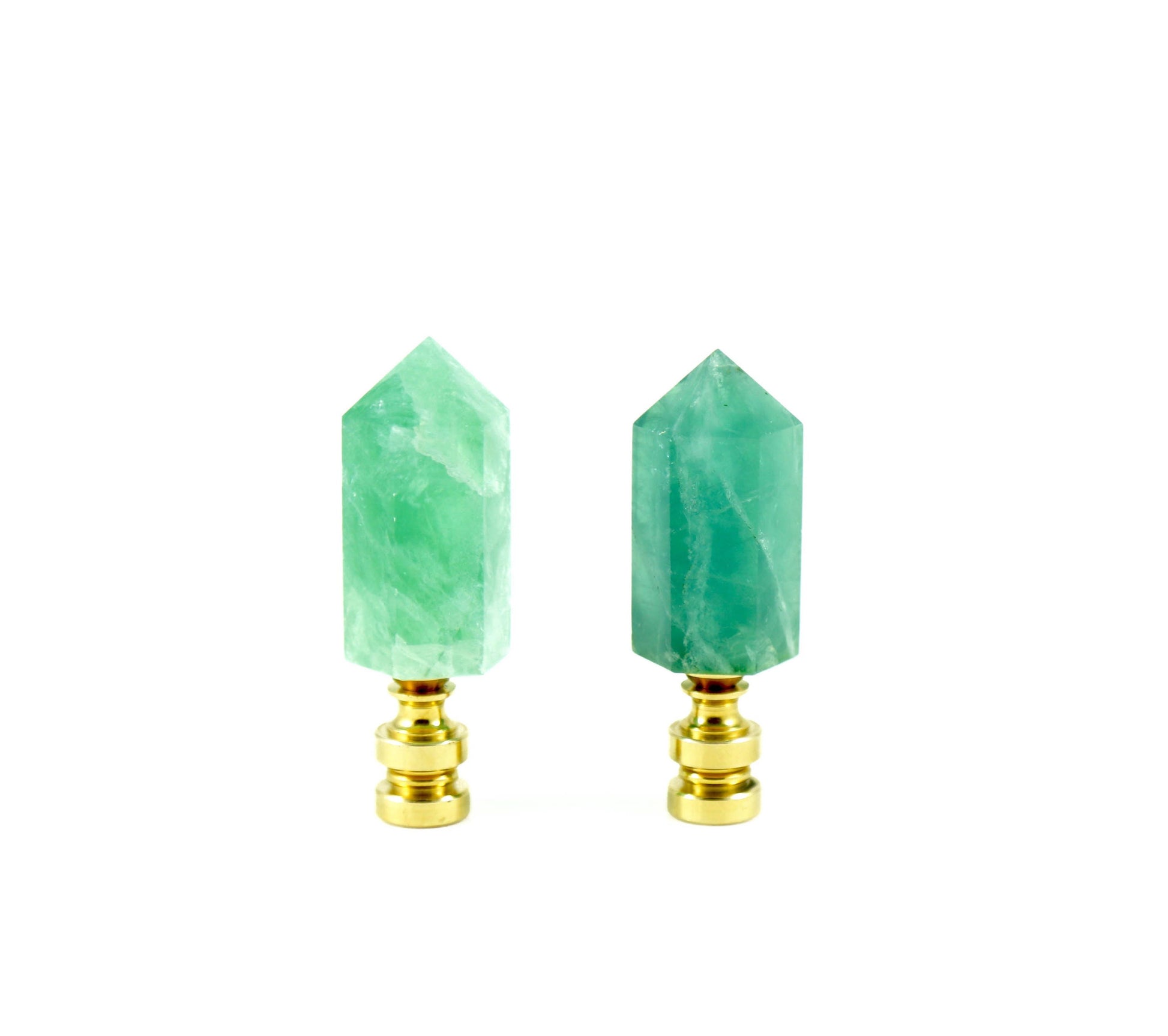 Take your lamps to a new level with our crystal lamp finials! This green fluorite finial is made with high quality hand-selected green crystals that are set on a modern brass base without prongs in order to showcase the raw stones.