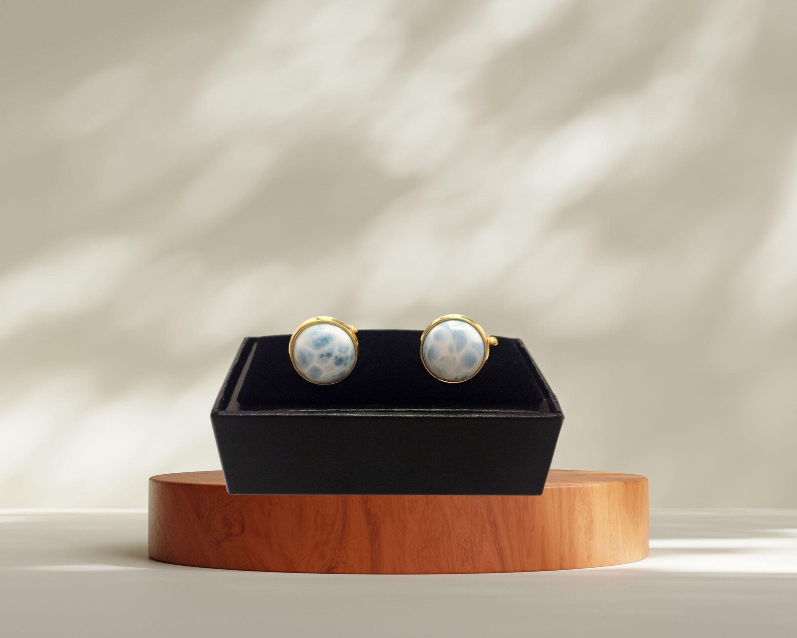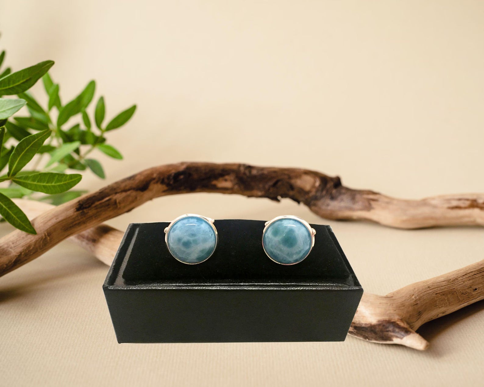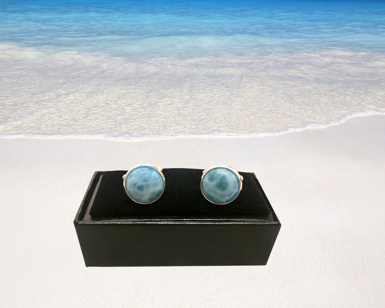 Atlantis Stone Larimar Cufflinks - Capture the Essence of Caribbean's Sunlit Waters