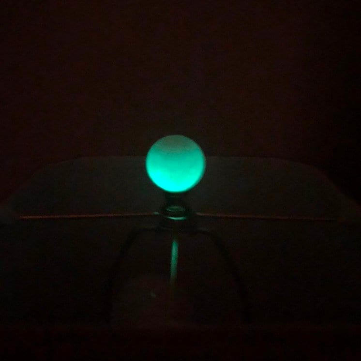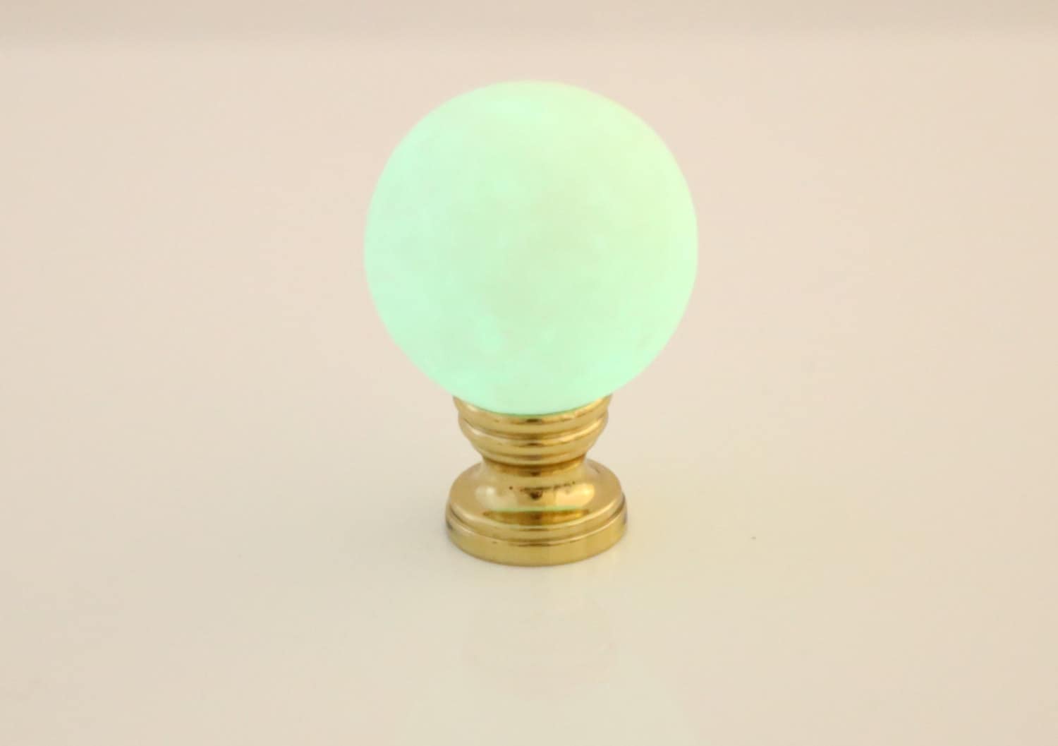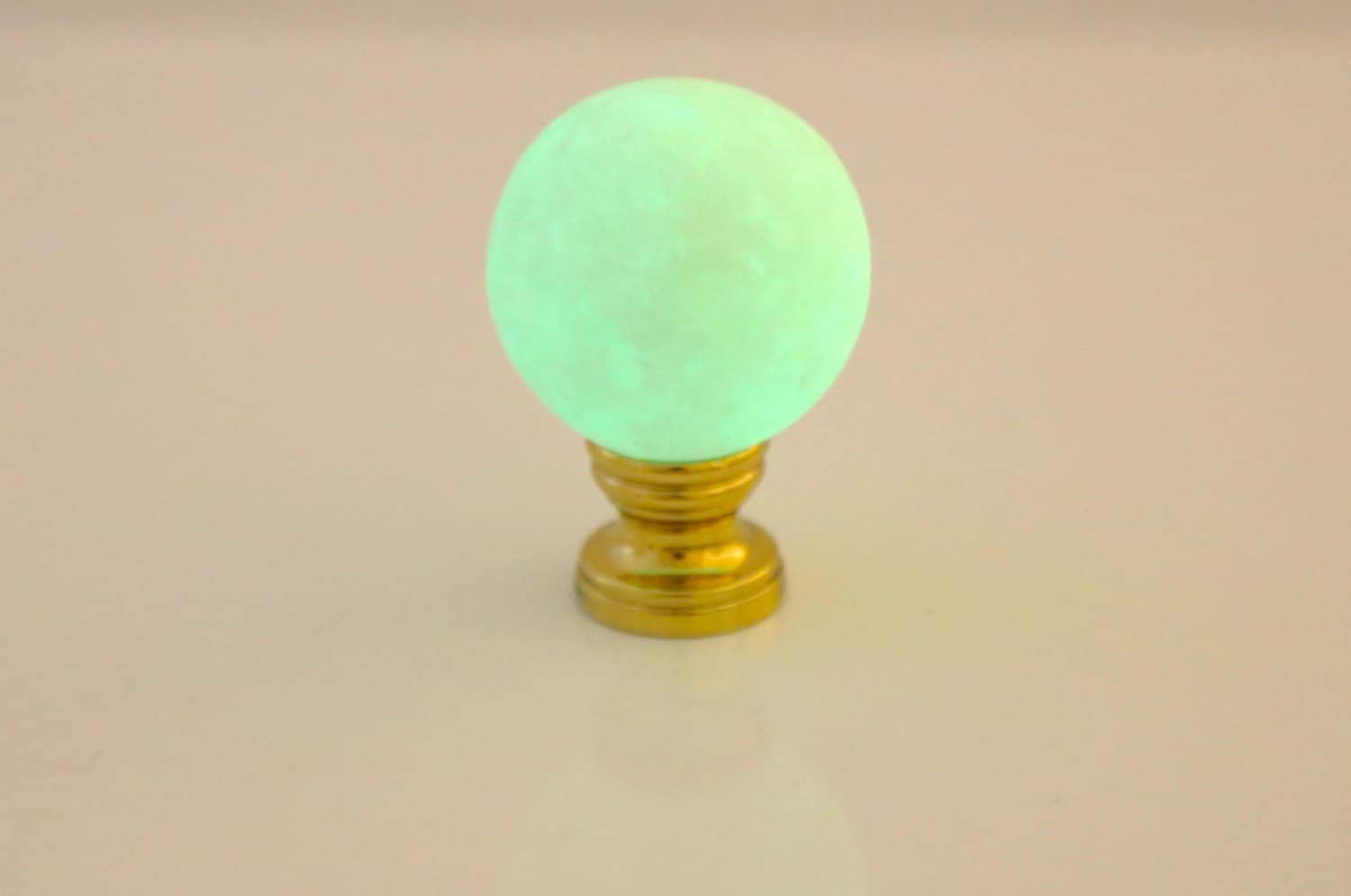 This moon globe lamp finial is out of this world! Top your lamp with this cool finial that doubles as a night light. It is made with a special stone that absorbs natural light in the daytime to provide a soft glow at night. This unique lamp finial is about 3" tall and 1.5" diameter.