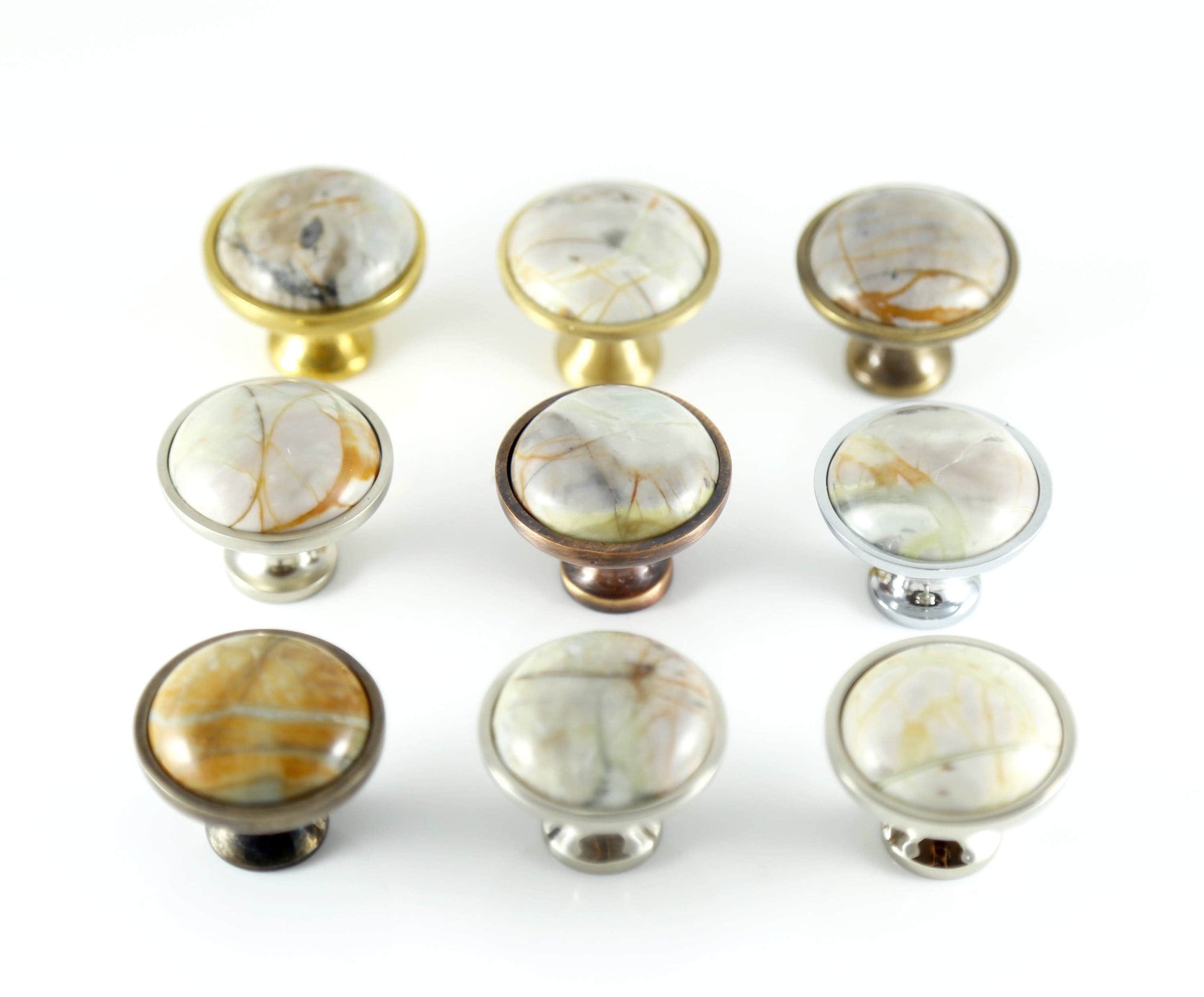 Worked out beautifully. Knobs went on new vanity. Stone compliments new marble countertop and bronze base goes with fixtures. I asked for similar stones and the owner did a great job picking them out. Very happy. Also very well made.