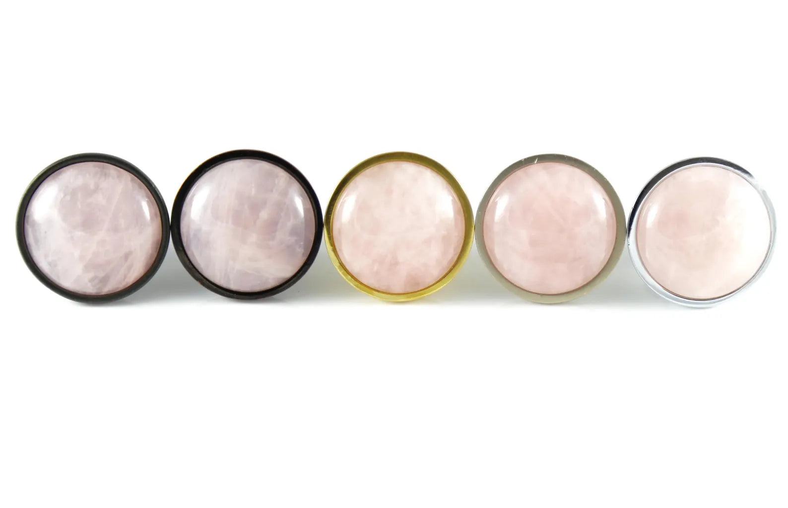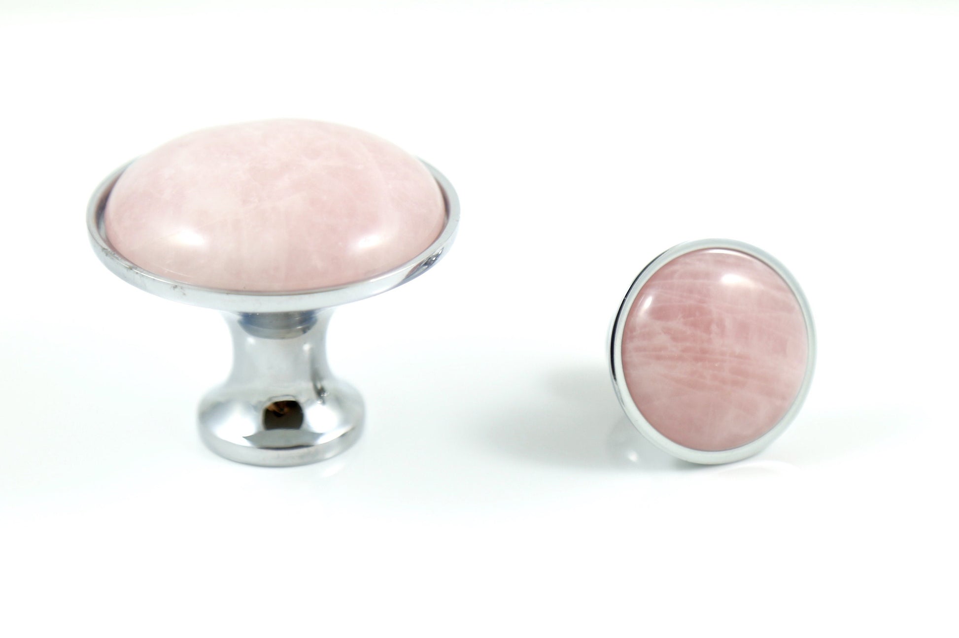 Choose your perfect hardware finish to complement your decor, transforming each piece into a bespoke treasure. Whether gracing the doors of a sophisticated bathroom or adding a touch of opulence to your kitchen cabinets, these knobs promise to elevate any space with their soft pink hues and smooth, polished surfaces. Indulge in the luxury of customization with our custom-finished rose quartz knobs, where every detail reflects your unique style.