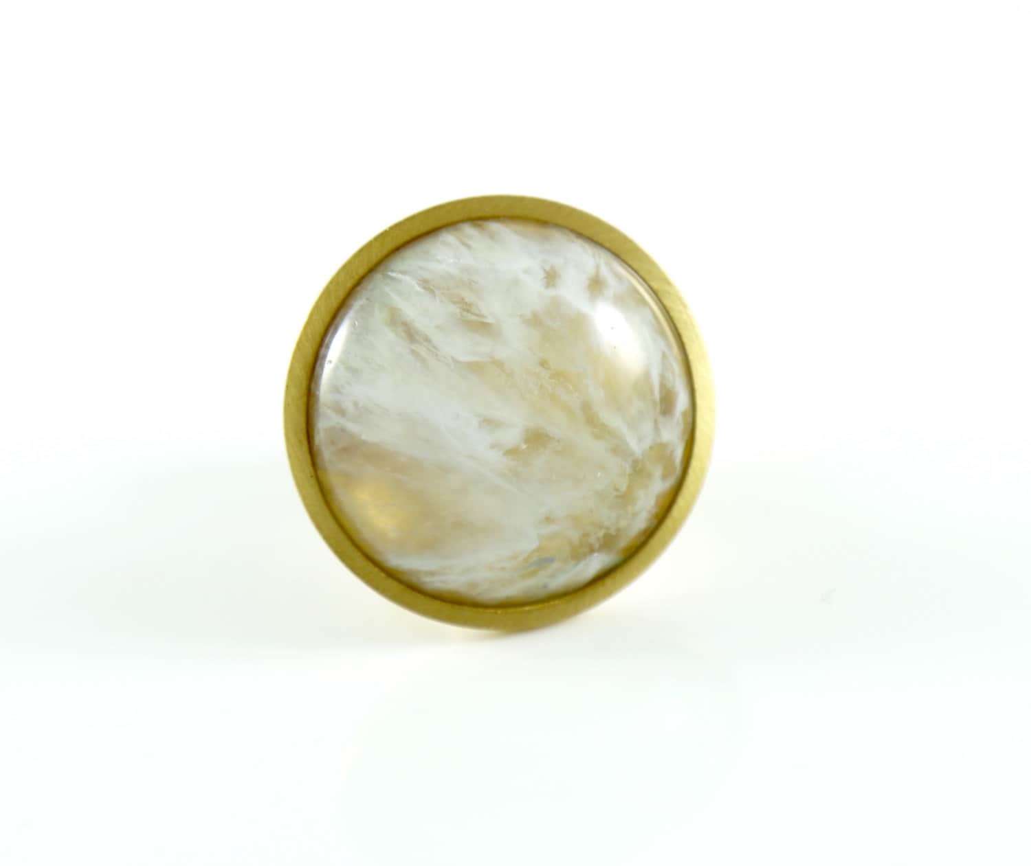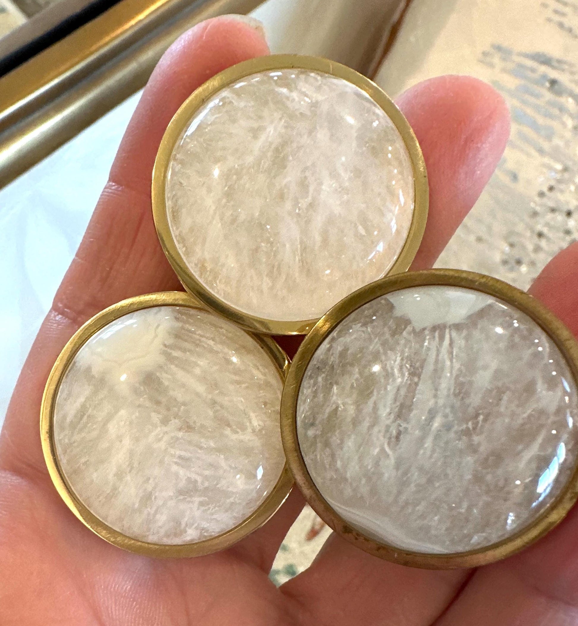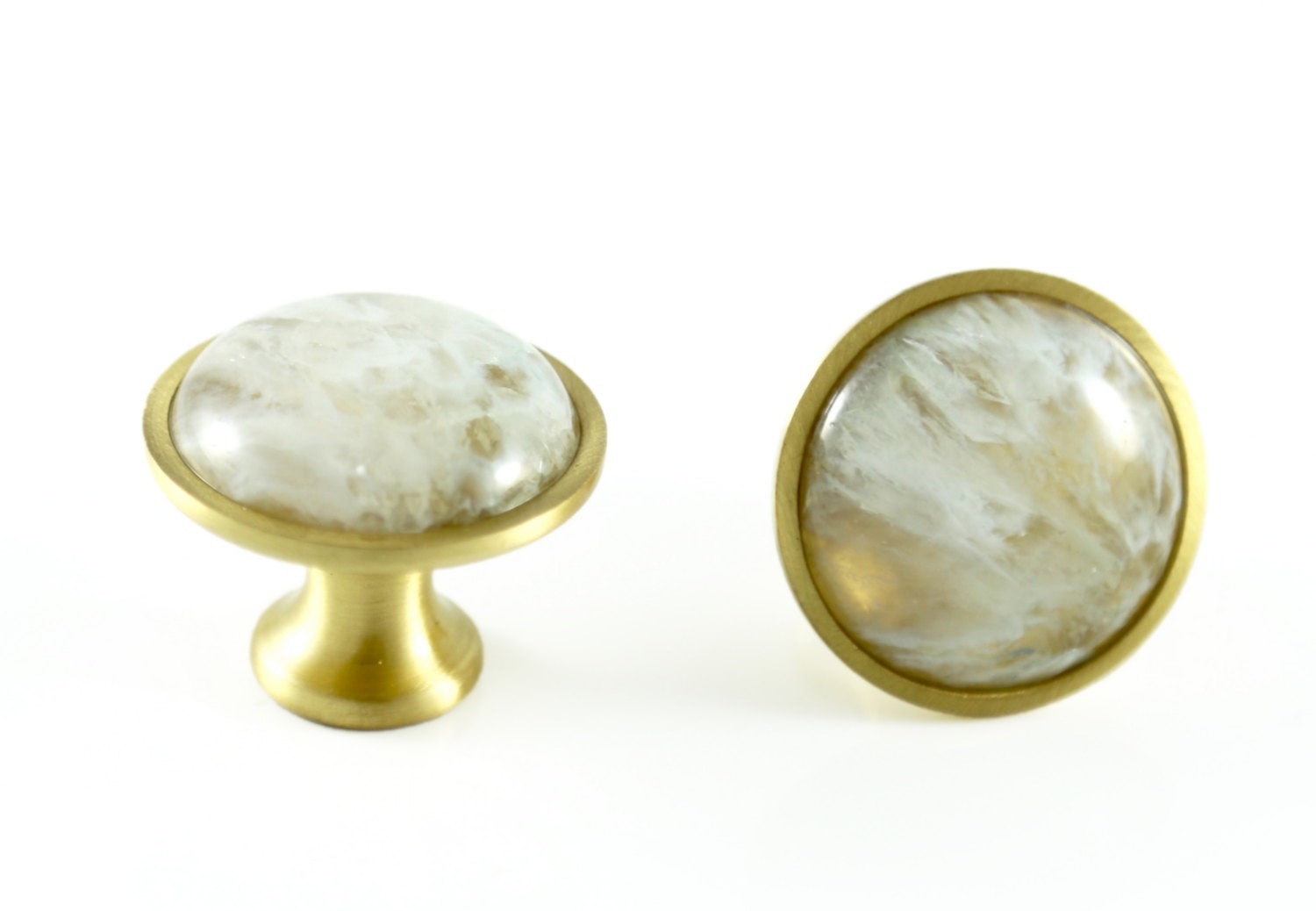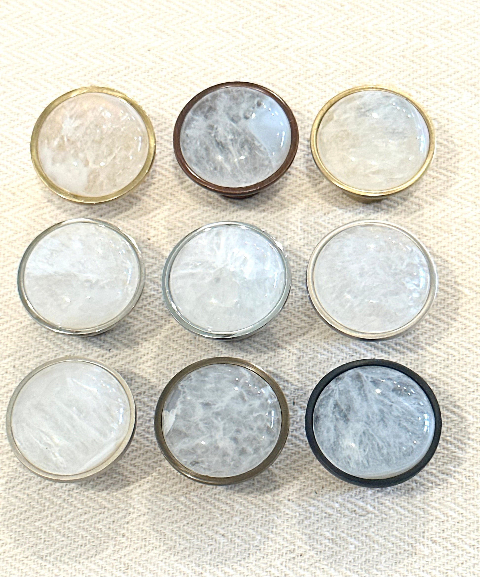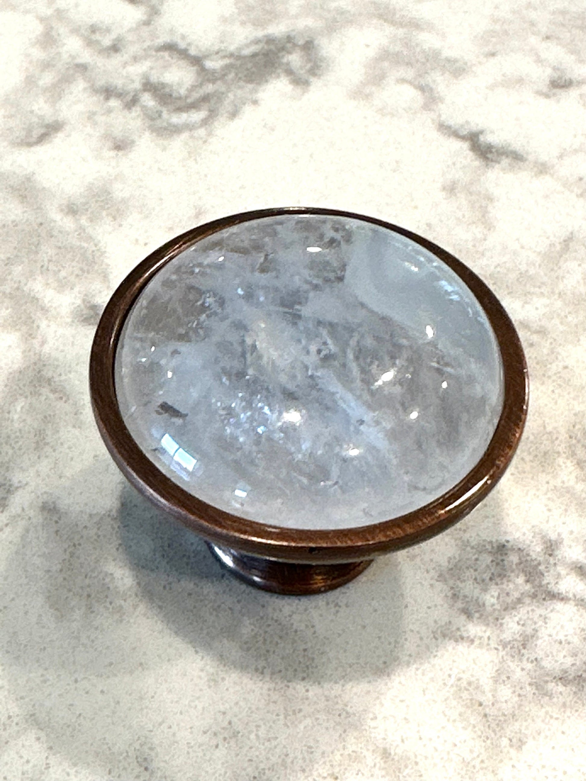 This clear crystal knob in a solid brass setting will give your kitchen cabinets or dresser drawers an infusion of pure luxury. Our stone knobs are unlike any other, with all finishes handmade over a base of HEAVY SOLID BRASS. You will feel the quality in the weight of the knob. The stones are professionally cut and set to last!