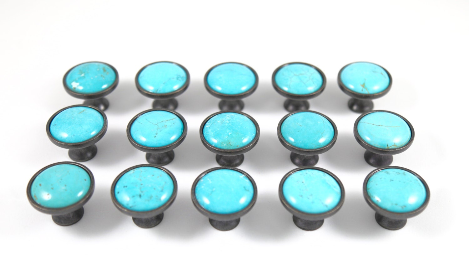 The turquoise knobs are beautiful and look exactly as pictured. Love them on my refurbished nightstand!